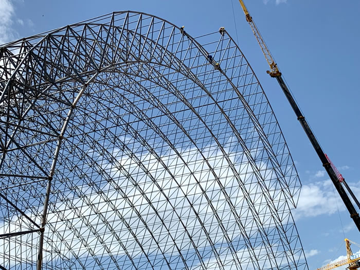 (2)网架加工前应对现场尺寸进行复测,确认无误后方可进行加工、安装;网架制作、运输、安装应遵守《空间网格结构技术规程》JGJ7-2010、《钢网架合肥螺栓球节点》JG/T 10-2009、《钢网架合肥螺栓球节点用高强度螺栓》 GB/T 16939-2016、《合肥钢结构合肥工程合肥施工规范》 GB50755-2012、《合肥钢结构合肥工程合肥施工质量验收标准》 GB50205-2020。